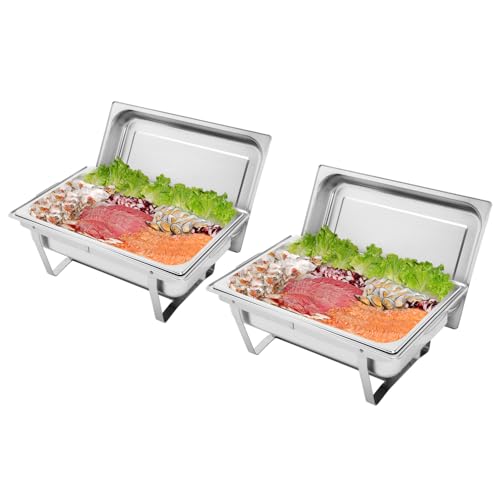 ROVSUN 2 Pack Chafing Dish for Buffet, 9 Quart Stainless Steel Chafing Dish Buffet Set with Rolled-Edge Design, Chafers and Buffet Warmers Sets with Folding Frame for Party, Catering, Wedding