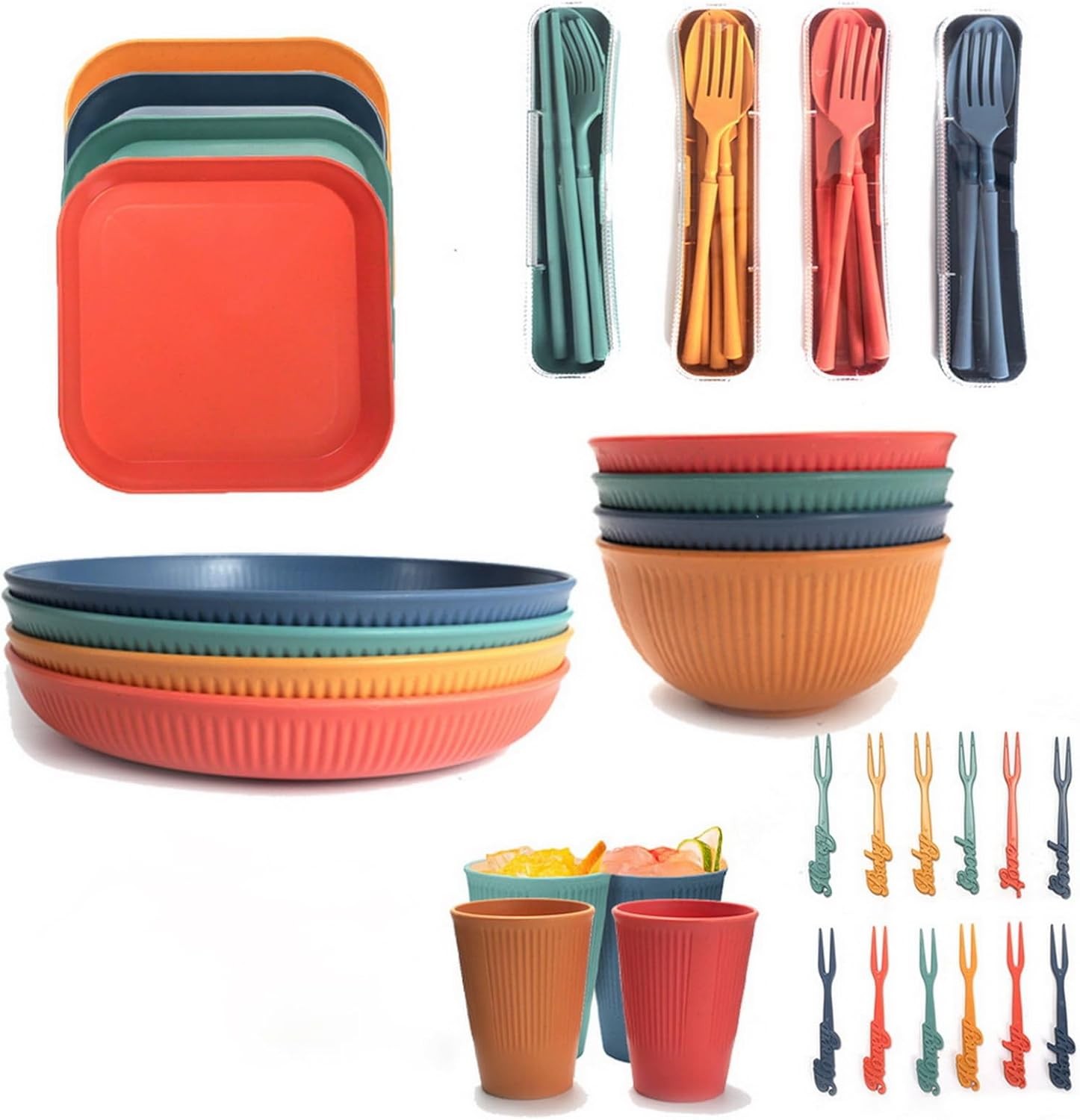 BERRYLION 48Pcs Plastic Dinnerware Sets for 4, Unbreakable Colorful Dinner Dish