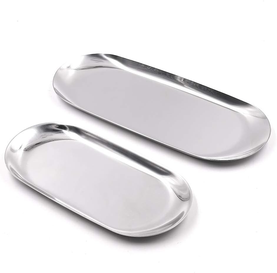 ANZOME 2 Sets Silver Oval Stainless Steel Trinket Tray,Towel Storage Dish Plate