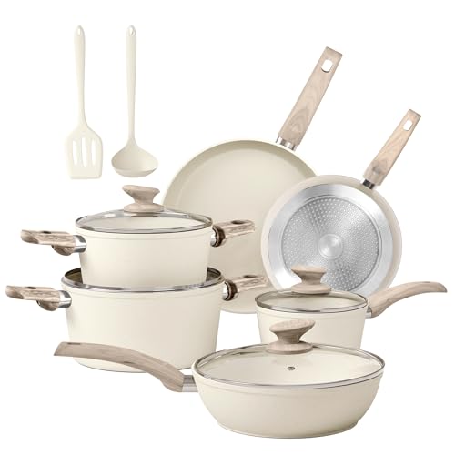 DishDelight Saucepan Set Induction Hob Pan Set 12pcs Pots and Pans Sets Non Stick with Lids Frying Pan Granite Cookware Nonstick Cooking Pot