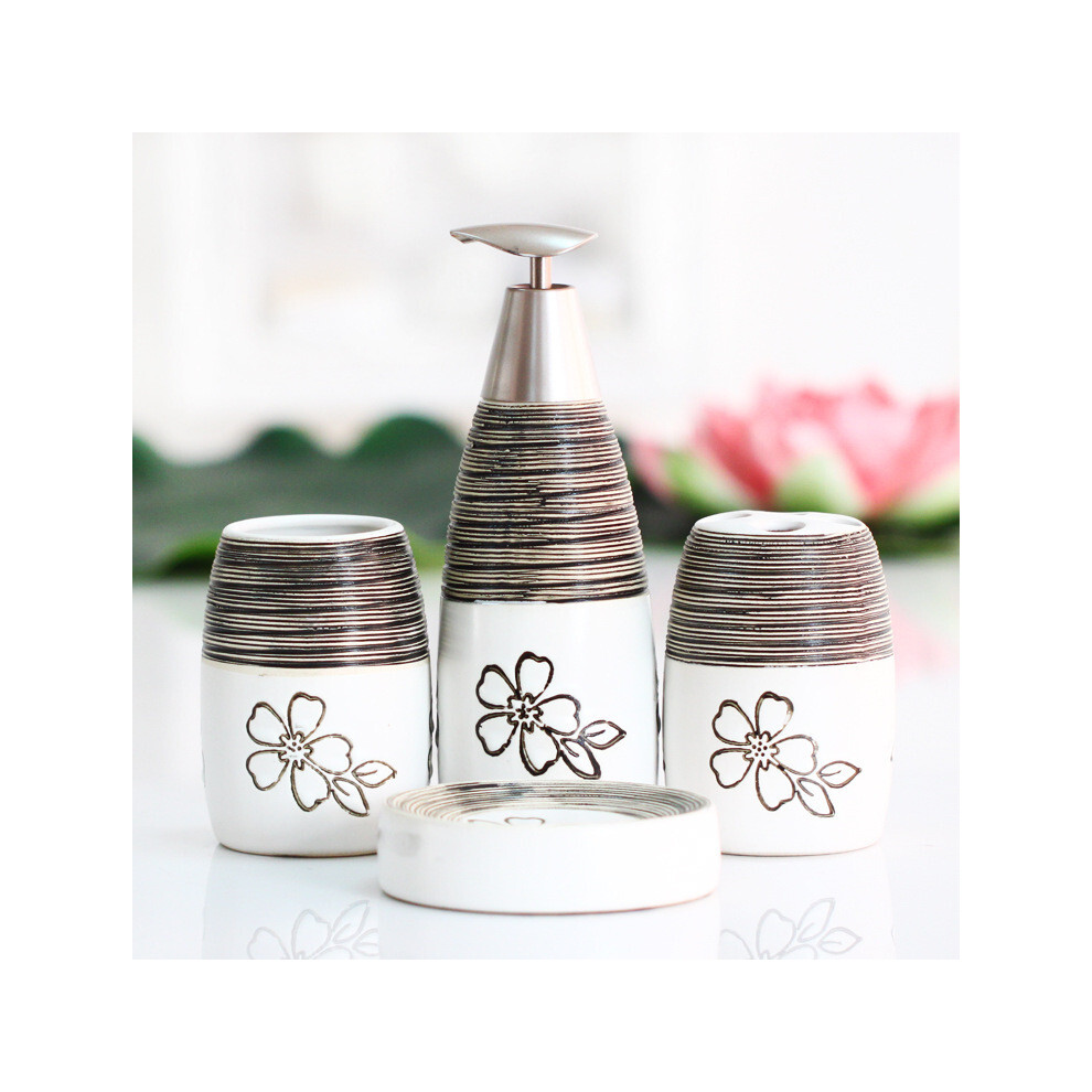 DSFIHJO Soap dispenser set Bathroom Accessories Sets Decoration Ceramic Soap Dispenser Toothbrush Holder Cup Dish Tray Bathroom toothbrush holder set(White-4pcs)