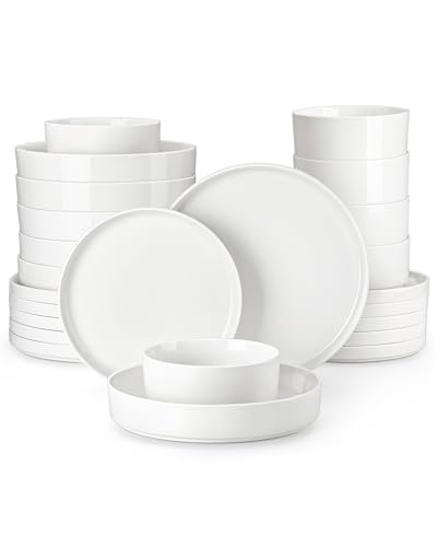 MALACASA 24 Pieces Porcelain Dinnerware Set, Modern White Dish Set for 6, Premium Serving Plates and Bowls Sets, Chip and Scratch Resistant Dishware Sets Kitchen Dishes Dining Ware Set, Series LEAH