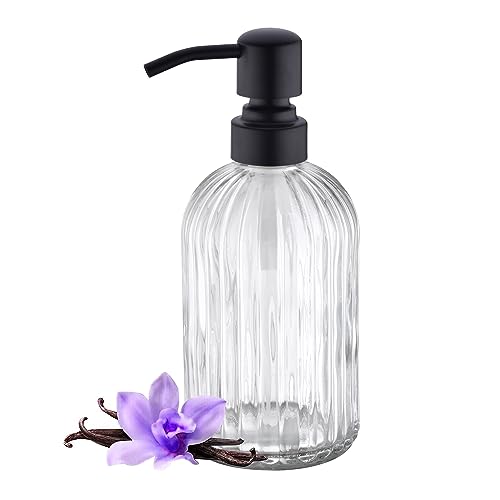 HIYAA 3 Pack Glass Soap Dispenser 17 Oz Versatile Lotion Liquid Soap Dish Dispenser Hand Soap Dispenser with Pump for Bathroom, Countertop, Kitchen, Laundry Room (Clear) (3P-Clear)