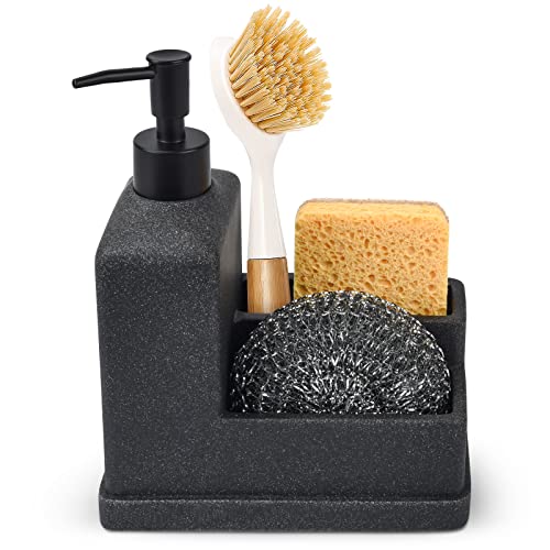 YAUKPH Kitchen Soap Dispenser with Sponge Holder Set for Sink, Hand and Dish Soap Dispenser with Brush, Matte Grey