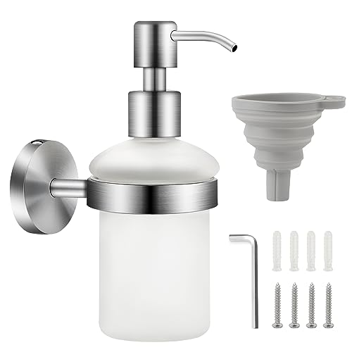 EXLECO Soap Dispenser Wall Mounted Made of 304 Stainless Steel Shampoo Shower Gel Cottle Glass Soap Dispenser Manual Brushed Soap Dish Dispenser