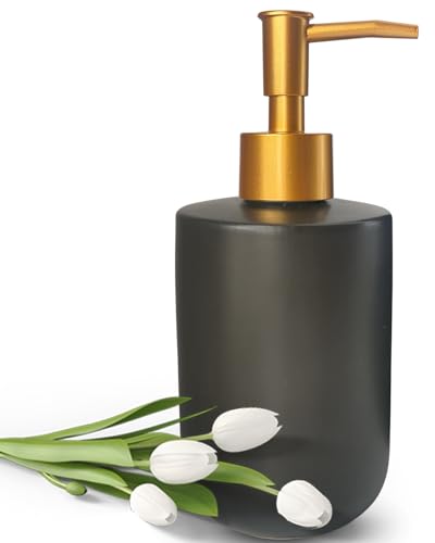 Liquid Soap Dispenser for Bathroom with Gold Pump,Dish Soap Dispenser for Kitchen,Refillable Countertop Lotion Ceramics Black Hand Soap Dispenser for Shower 420ml(Cylindrical Black Bottle)