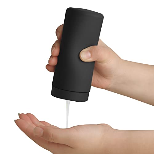 ElmRidge Dish Soap Silicone Dispenser for Kitchen Sink,Squeeze Washing Up Liquid and Hand Soap,Round refillable Silicone Bottles,Easy to Fill and to use, 8.5 oz,Black 2.4 x 2.4 x 5.5 inches (Black)