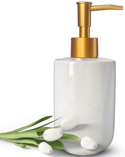 FE Soap Dispenser, 300ml/10oz Ceramic Liquid Soap Pump Dispenser, Refillable Dish Soap Dispenser for Kitchen Bathroom Washroom (White)