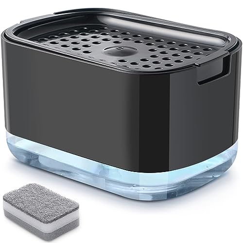 Kitchen Dish Soap Dispenser with Sponge Holder, 2022 Newest 2-in-1 Countertop Soap Pump Dispenser, for Kitchen Sink Dishwashing Soap Dispenser - 12.5 Ounces