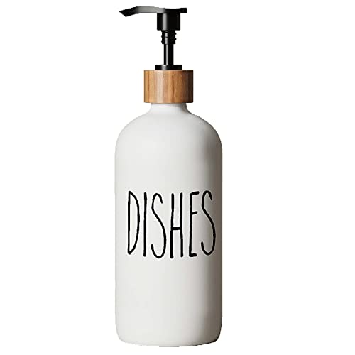 Soap Dispenser,Dish Soap Dispenser for Kitchen Sink.Glass Hand Soap Dispenser, Modern Farmhouse Decor Dish Soap Pump for Bathroom,Kitchen Sink Decor (White-Dishes)