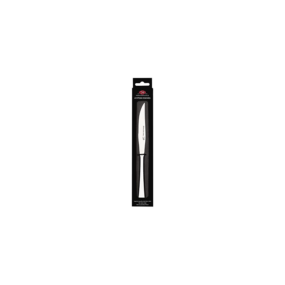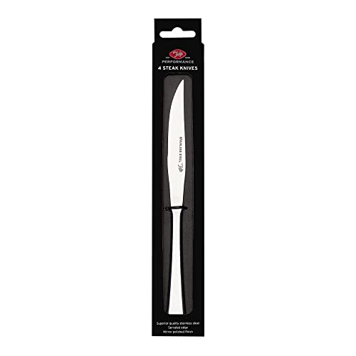 Tala Performance Set of 4 Stainless Steel Steak Knives, Sharp Serrated Edge, Rust and Stain Resistant, Non-Slip Grip, Dishwasher Safe with a Mirror Polish Dishwasher Safe with a Mirror Polish Finish