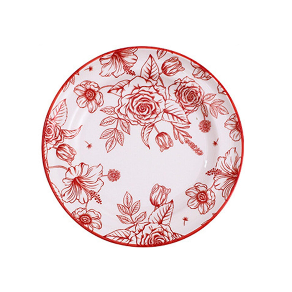 Ceramic Dinner Plates Round Red Floral Pattern 20.5x20.5x2.7 cm Microwave And Dishwasher Safe Color A Wedding Dinnerware