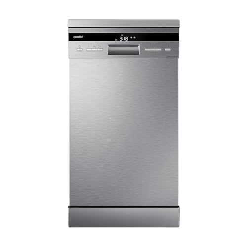 COMFEE' Slimline Freestanding Dishwasher CDWEF1036ESS-UK 45cm Wide With 10 Place Settings, Whisper Quiet 44dB, Auto Wash, Auto Open Drying, Energy Class D, Stainless Steel