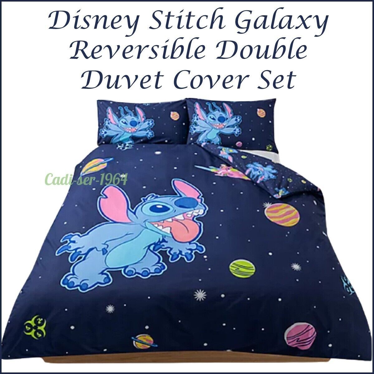 Disney Stitch Galaxy Navy DOUBLE Duvet Set Stitch Bedding Set NEW 100% Cotton