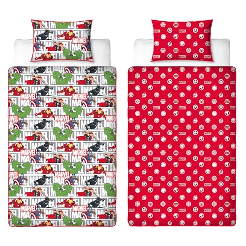 Character World Disney Official Marvel Avengers Single Kids Duvet Cover Set | Reversible 2 Sided Bedding Including Matching Pillow Case | Comic Coolness Design Single Bed Set