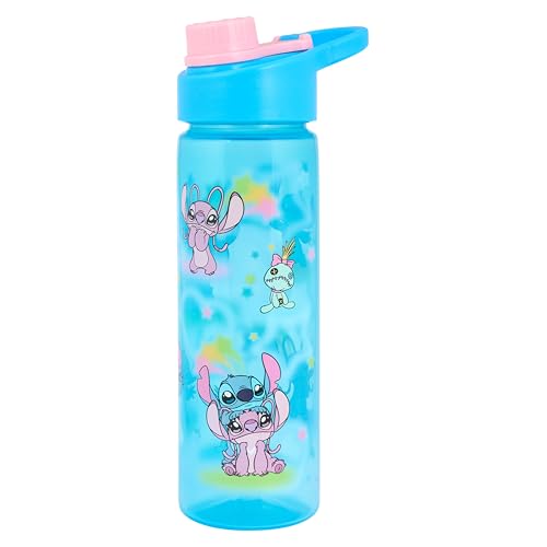 Disney Stitch Water Bottle with Flip Spout, Blue, 600ml, Featuring Lilo & Stitch Style with Carry Handle