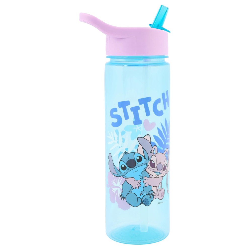 Disney Stitch Water Bottle Flip Up Straw 600ml â Official Merchandise by Polar Gear â Kids Reusable Non Spill BPA Free Ideal For School Nursery Sp