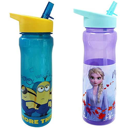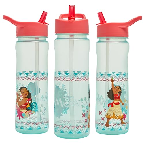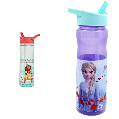 Disney Moana Water Bottle Flip Up Straw 600ml - Turquoise & Pink & Disney Frozen Water Bottle with Straw – Reusable Kids 600ml PP – in Purple, Multi Colour