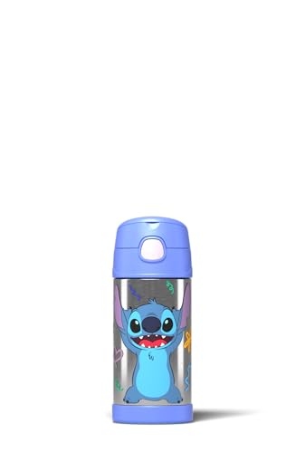 Thermos - Disney's Stitch Bottle (355ml) - BPA Free, Stainless Steel, Spill Proof, Pop-Up Straw, Disney Kids Flask with Personalised Name Labels & Carry Handle for 12-Hour Cold Drinks