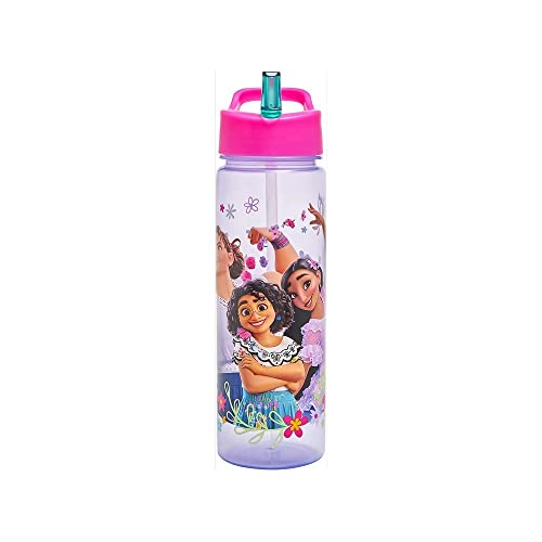 Encanto Water Bottle Flip Up Straw 600ml – Official Disney Merchandise by Polar Gear – Kids Reusable Non Spill - BPA Free - Recyclable Plastic - Ideal For School Nursery Sports Picnic - Purple & Pink