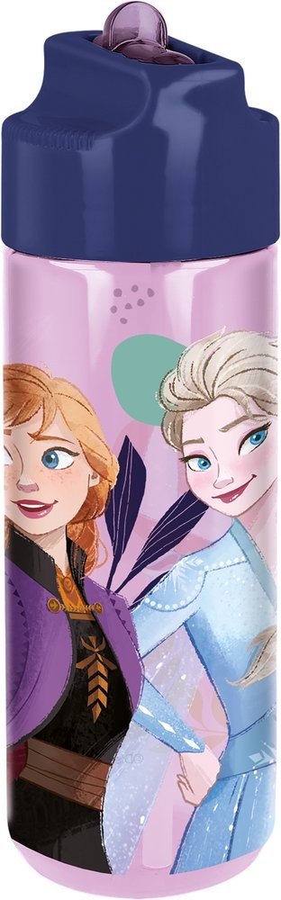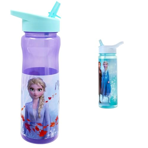 Disney Frozen Water Bottle with Straw – Reusable Kids 600ml PP – in Purple & Frozen Sparkle Water Bottle Flip Up Straw 600ml – Official Merchandise Kids Reusable