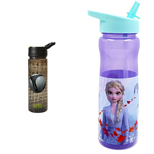 Polar Gear Football Water Tracker Bottle with Straw – Reusable Kids 600ml PP in Green & Black & Disney Frozen Water Bottle with Straw – Reusable Kids 600ml PP – in Purple