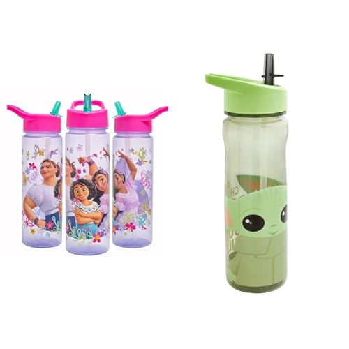 Disney Encanto Water Bottle Flip Up Straw 600ml – Official Merchandise by Polar Gear & Star Wars Mandalorian 600ml Kids Water Bottles With Straw