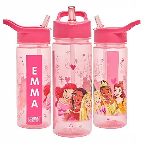 Disney Princess Personalised Sticker Water Bottle with Straw 500ml–Official Merchandise by Polar Gear, Kids Reusable Non Spill BPA Free Tritan – Ideal For School Nursery Sports Picnic - Pink