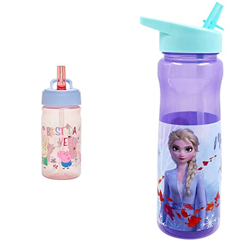 Peppa Pig Nostalgia Water Bottle with Flip up Straw 380ml – Pink & Purple & Disney Frozen Water Bottle with Straw – Reusable Kids 600ml PP – in Purple – Official Merchandise, Multi Colour