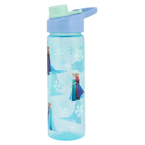 Disney Frozen Water Bottle with Flip Spout, Blue, 600ml, Featuring Anna and Elsa, Chugger Style with Carry Handle