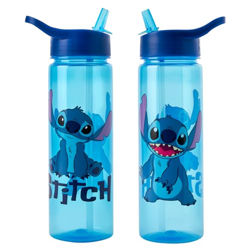 Disney Stitch Water Bottle Flip Up Straw 600ml – Official Merchandise by Polar Gear – Kids Reusable Non Spill - BPA Free - Recyclable Plastic - Ideal For School Nursery Sports Picnic , Blue