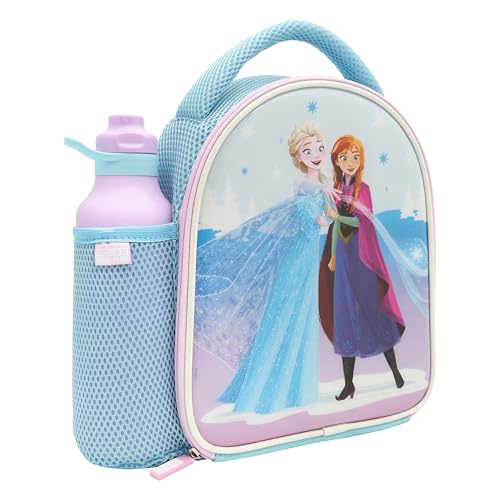 Disney Official Frozen Lunch Bag with Kids Water Bottle by Polar Gear - Back to School Supplies Frozen Bag - 600D Polyester Insulated Girls Lunch Box with Elsa and 600ml Drinks Bottle