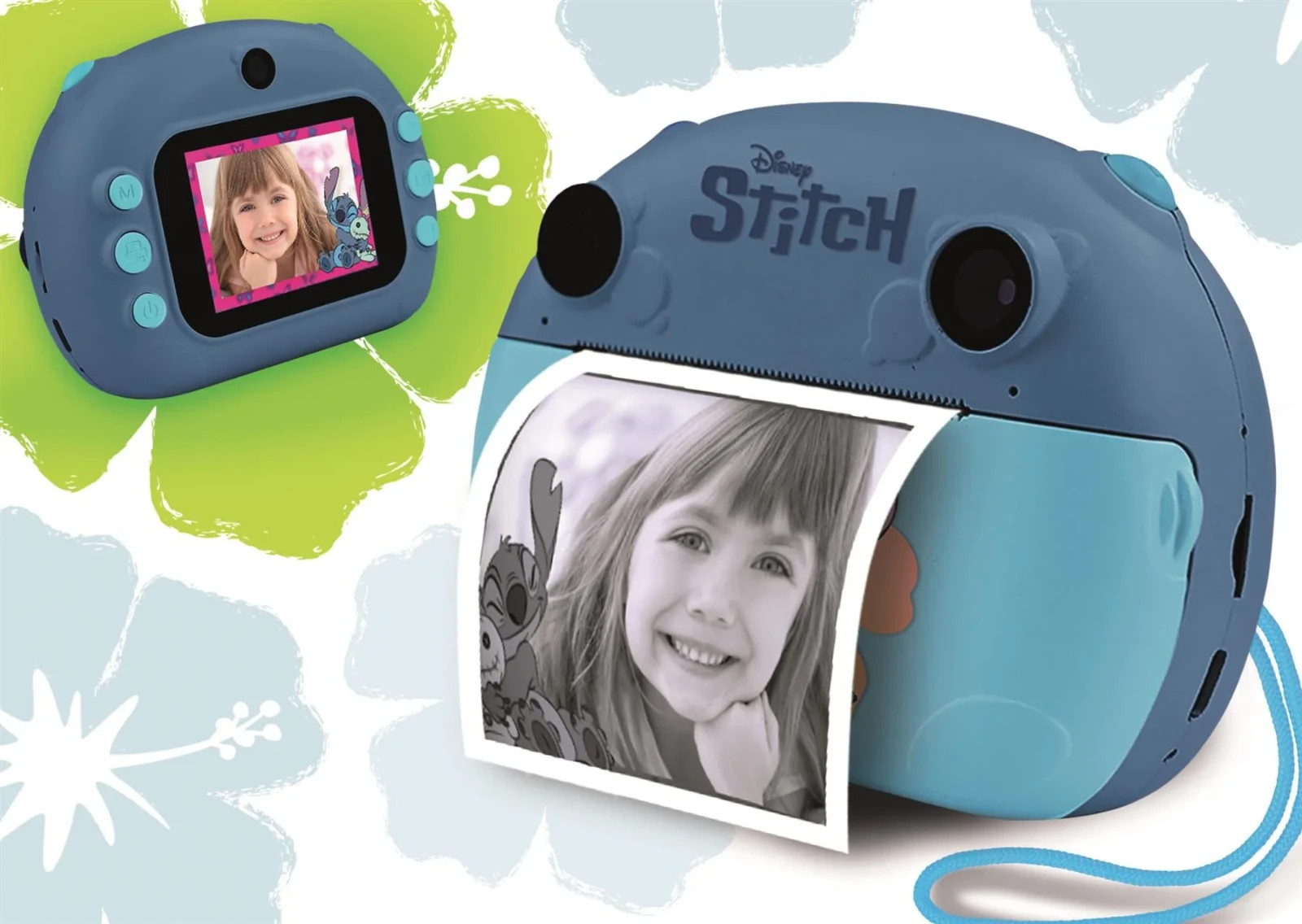 LEXIBOOK, Disney Stitch, Starcam® Print, camera pack with instant printer, SD card, 4 paper rolls, Blue, DJ130DZ