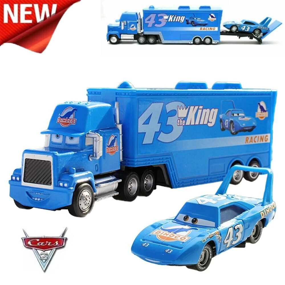 2Pcs Disney Pixar Cars NO.43 The King Truck with DiNOco 1:55 Diecast Toys Set