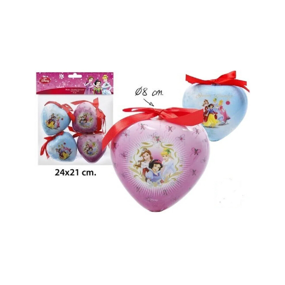 Disney Princess Heart Shape Plastic Christmas Baubles - 4 Pack