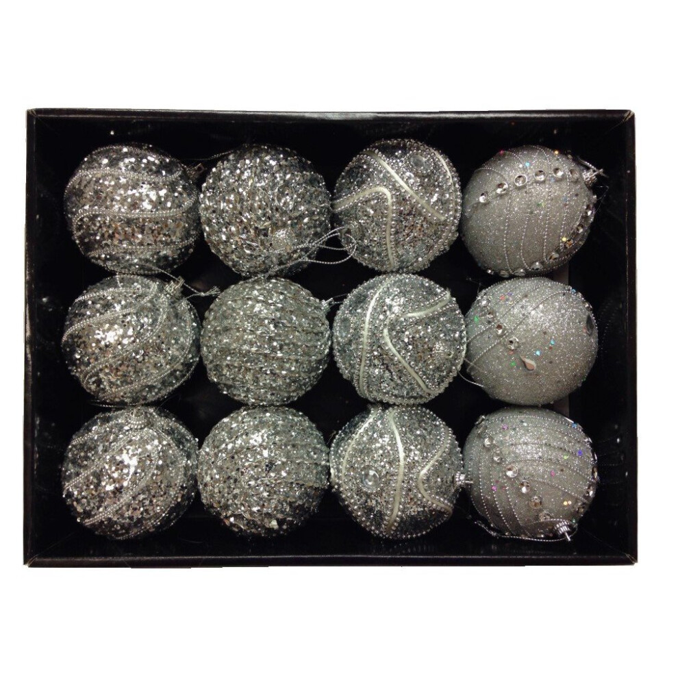 Snow White Branded Pack of 12 Deluxe Silver 8cm Christmas Tree Baubles