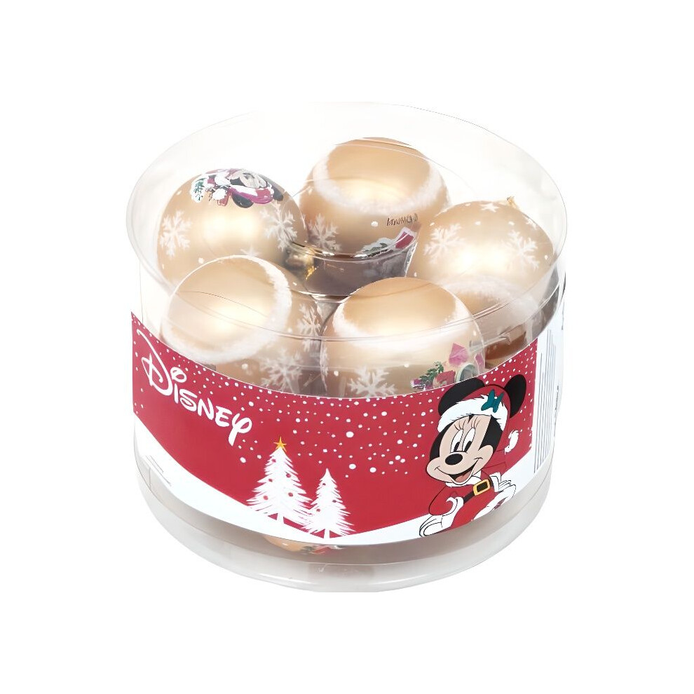 Christmas Tree Baubles - DISNEY-Minnie - Set of 6 - Diameter 8cm - Plastic - Snow Effect