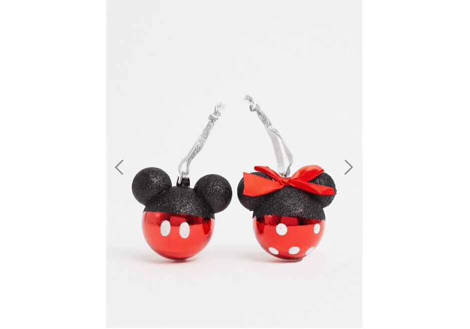 Mickey Mouse Christmas Baubles Minnie Decorations 2 Pack Red & Black - 7622