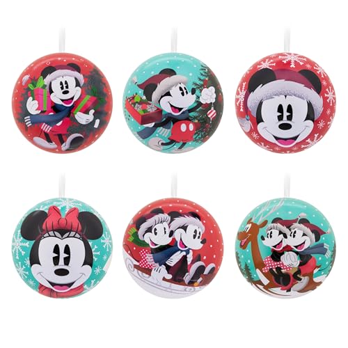 Hallmark Disney Mickey & Minnie Mouse Christmas Tree Decorations, 12 Pack XMAS Ornaments, Tin Baubles