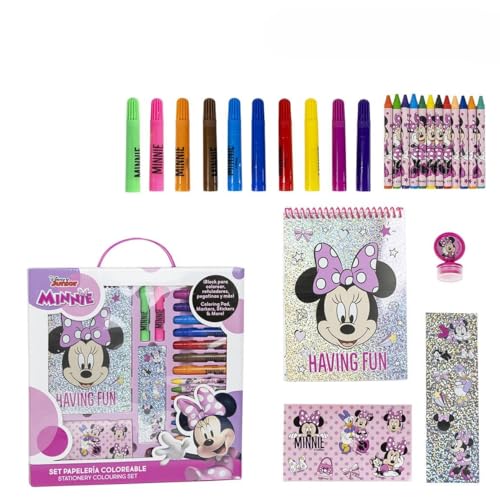Disney Minnie Stationery Colouring Set for Kids Includes 1 Colouring Book, 1 Stamp, 2 Sticker Pages, 10 Colour Markers, 12 Wax Crayons