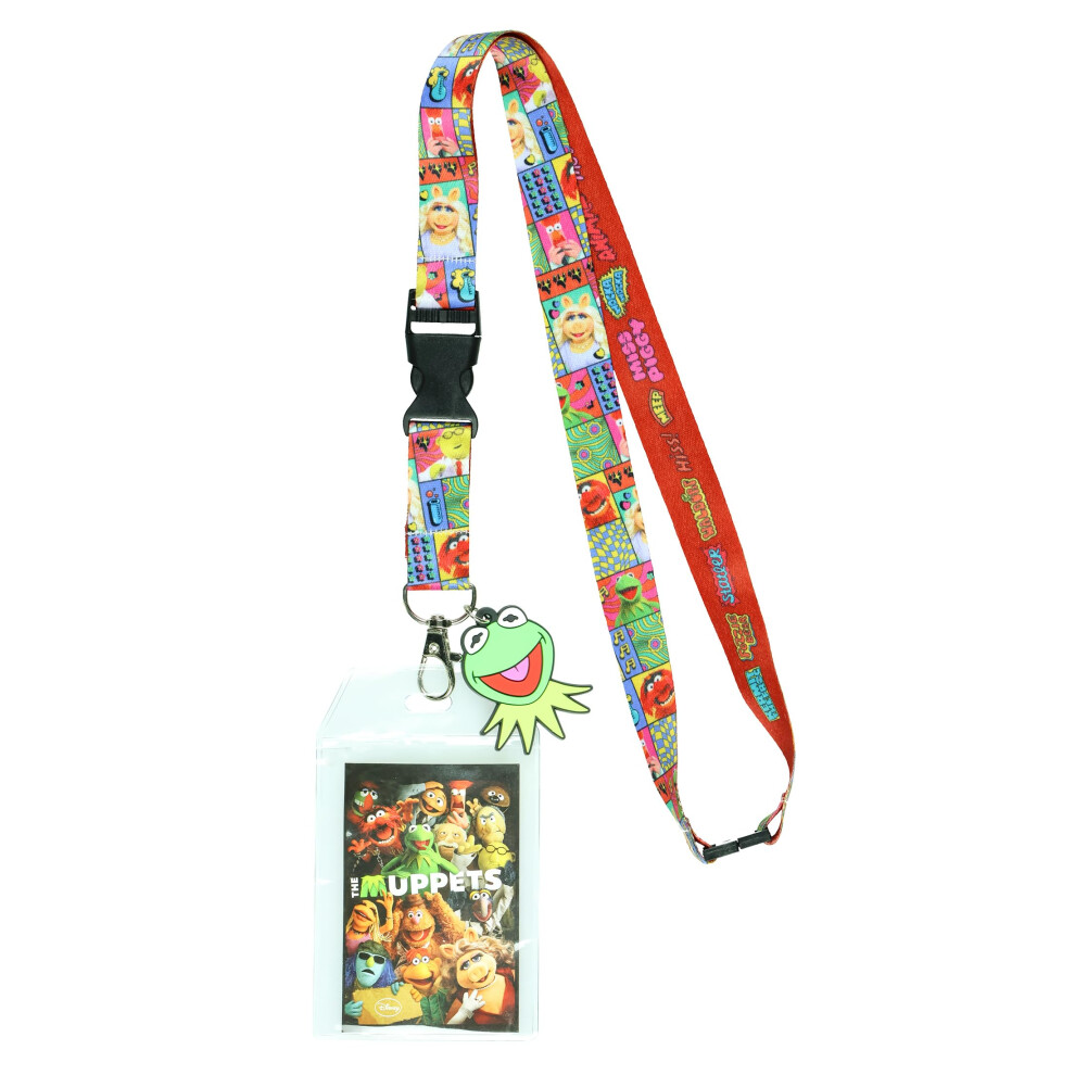 The Muppets Cast Character Design Lanyard with Clear ID Badge Holder and 2"""" Rubber Kermit The Frog Charm