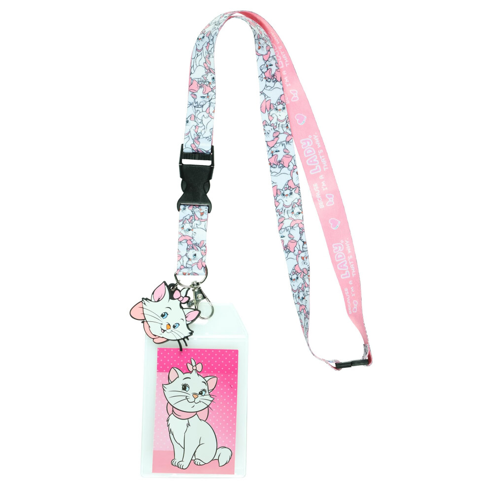Disney Aristocats Marie Because I'm a Lady Breakaway Lanyard ID Badge Holder with 2"""" Marie Rubber Charm
