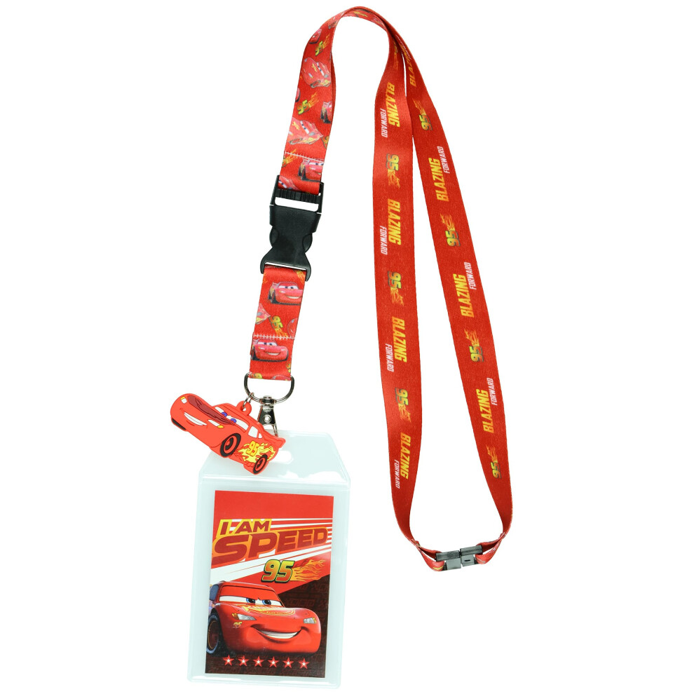 Disney Cars Lightning McQueen Blazing Forward Lanyard with Clear ID Badge Holder and 2"""" Rubber Race Car Charm