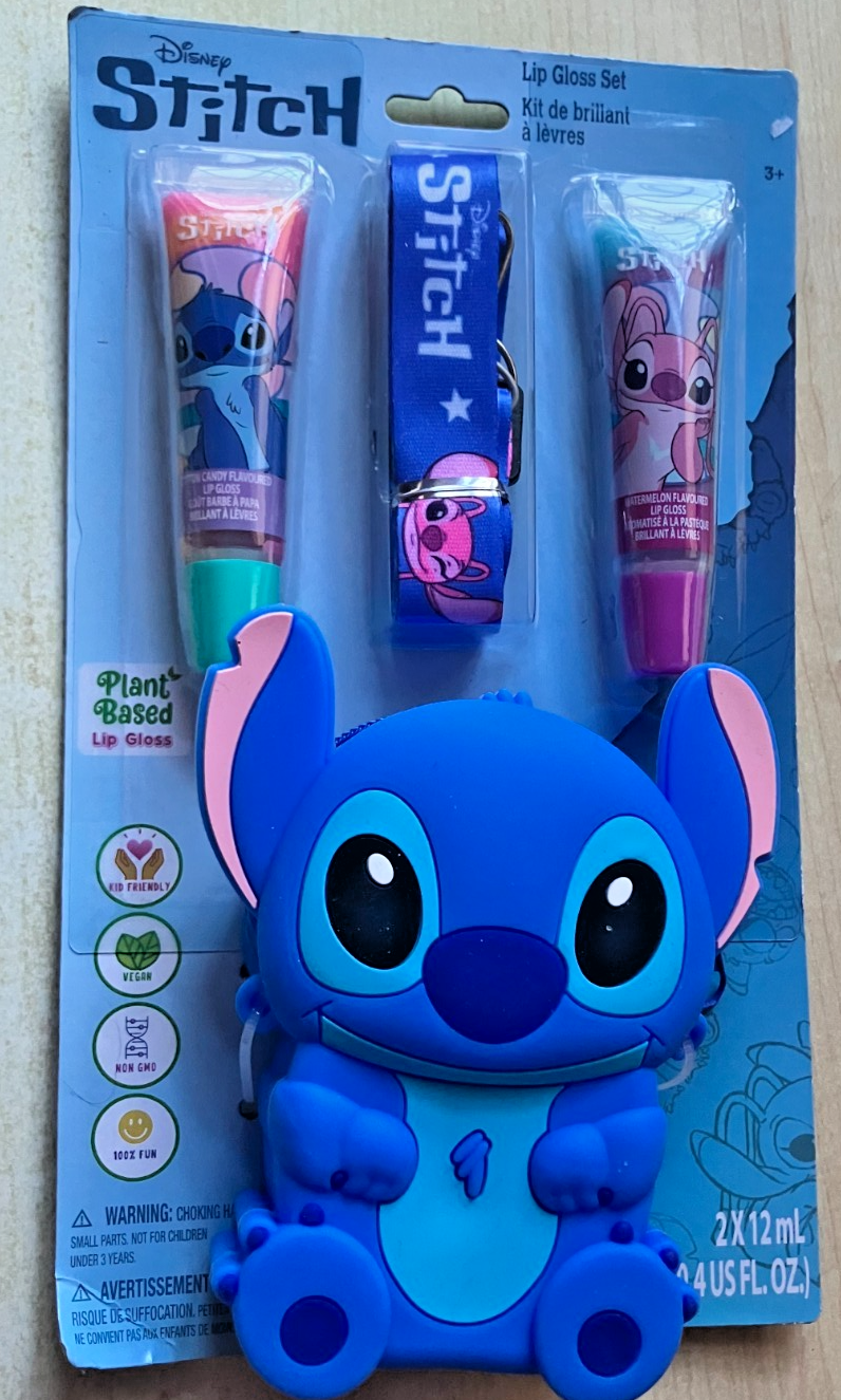 BNIP New Sealed Official Disney Stitch Lip Gloss Set - 2 Gloss 1 Puse 1 Lanyard