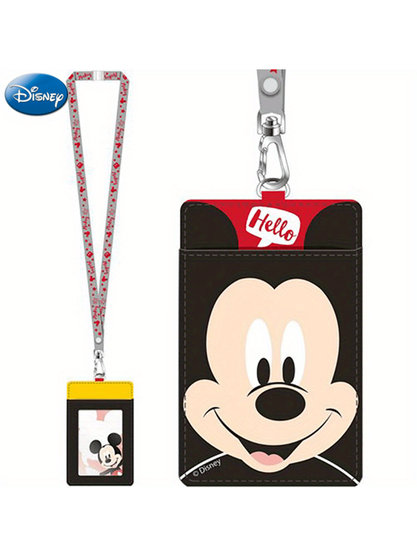 1pc Disney Mickey Mouse Lanyard Card Holder Officially Licensed Cute Polka Dot Hello Themed Movies Anime Peripheral Character ID Case Accessory Gift