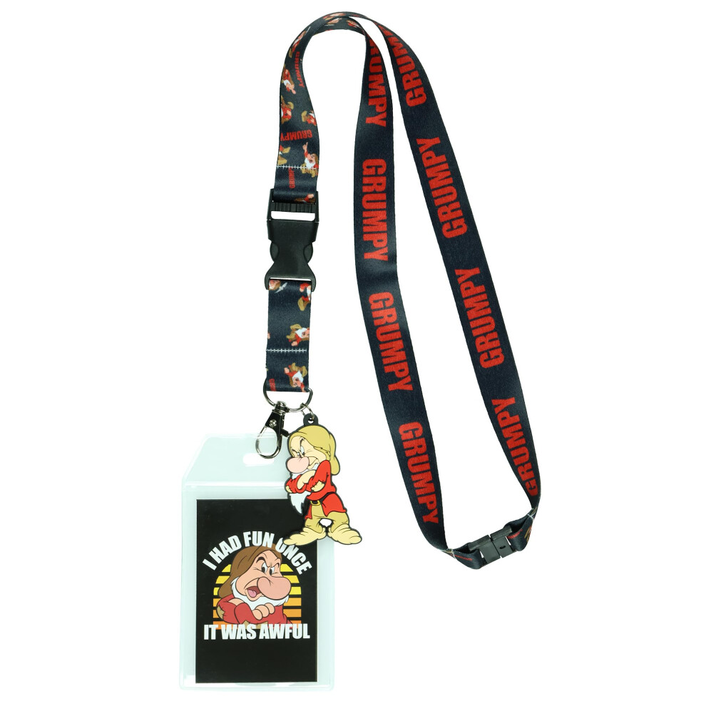 Disney Snow White Grumpy This is My Happy Face Lanyard with Clear ID Badge Holder and 2.5"""" Rubber Grumpy Charm