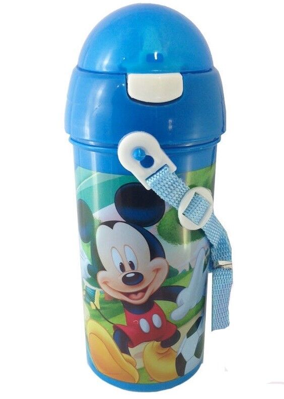 Disney Mickey Mouse Drinks Bottle with Pop Up Straw and Lanyard