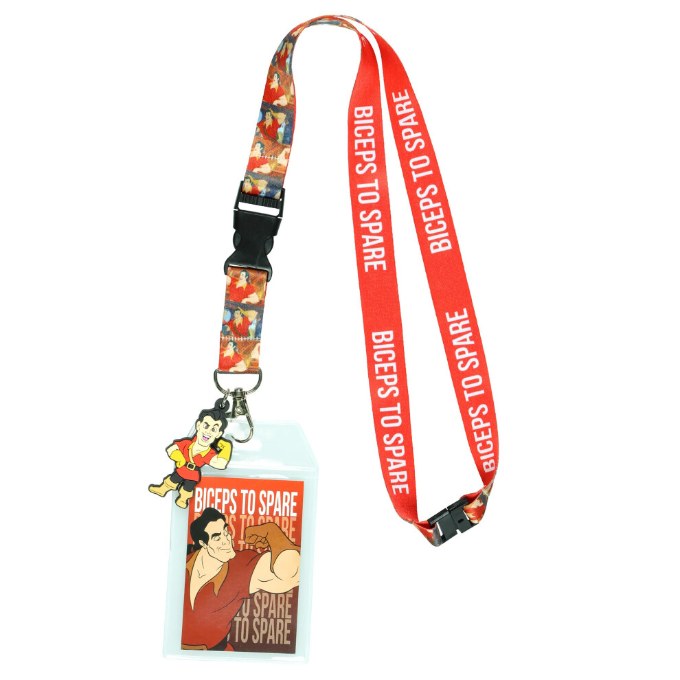 Disney Beauty and The Beast Gaston Biceps to Spare Lanyard with ID Badge Holder and 2"""" Rubber Gaston Charm