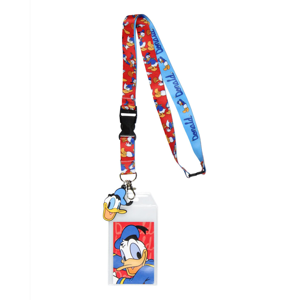 Disney Classic Donald Duck Reversible Lanyard with Clear ID Badge Holder and 2"""" Donald Rubber Charm
