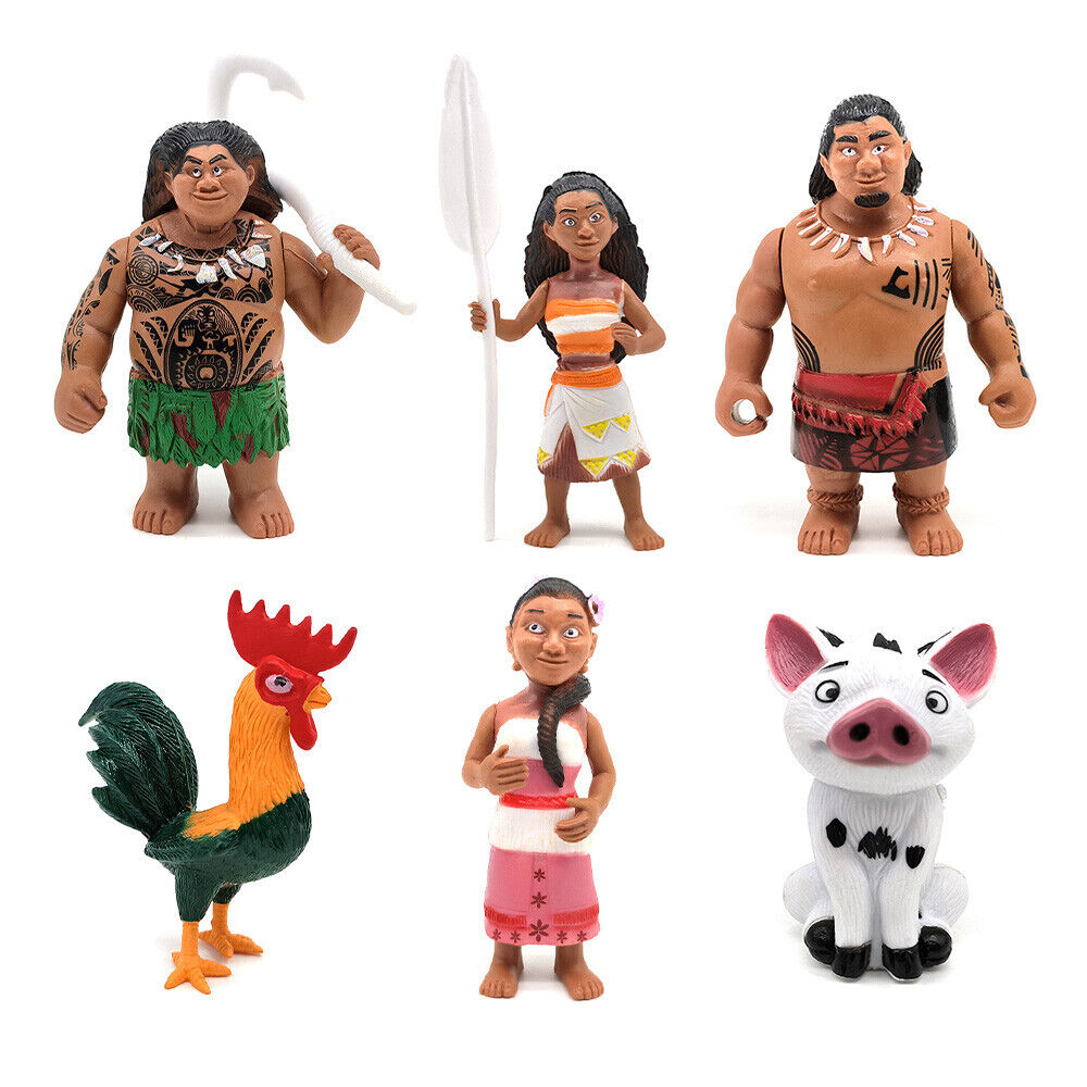 6Pcs/Set Moana Maui Disney Marine Princess Action Figure Model Toys Doll Topper
